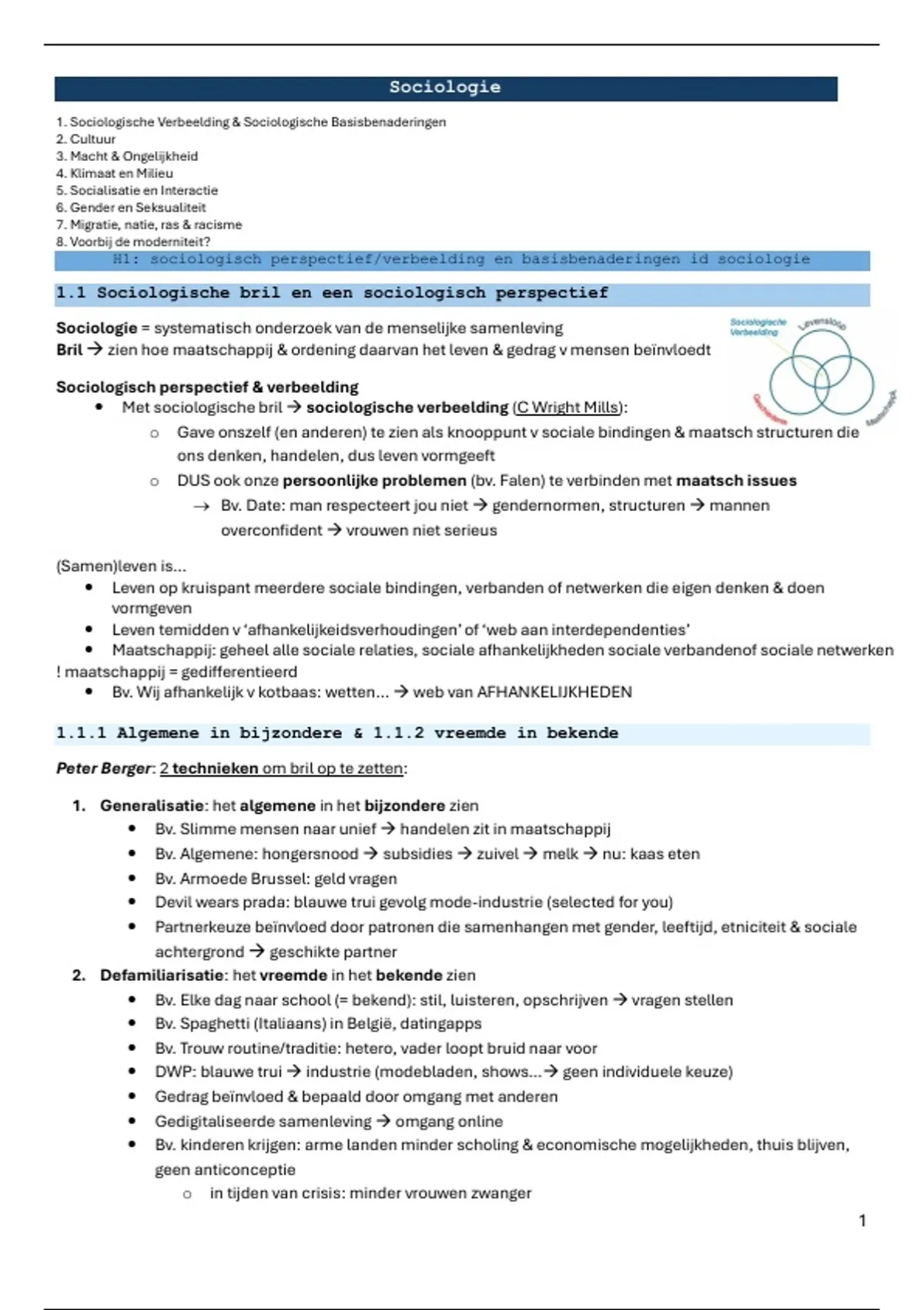 H1: sociologisch perspectief/verbeelding en basisbenaderingen id sociologie