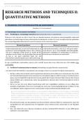In dit document kun je een volledige samenvatting terugvinden van 'Research Methods and Techniques II: Quantitative Methods', gedoceerd door Prof. Dr. T. Vantilborgh. Dit vak wordt in het Engels gegeven, maar deze samenvatting is vertaald naar het Nederlands.