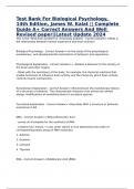 Test Bank For Biological Psychology, 14th Edition, James W. Kalat || Complete Guide A+ Correct Answers And Well Revised paper||Latest Update 2024