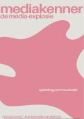 - Voor het vak Mediakenner is het belangrijk dat je de hoofdstukken uit het langdradige boek 'Media-explosie: trends en issues in media en communicatie' goed kent. In dit document zijn die hoofdstukken (1, 2, 3, 4, 5, 8, 9 en 18 (paragrafen 5 tot en met 11)) overzichtelijk en compact samengevat. Zo heb jij snel alle kennis uit dit boek die je nodig hebt.