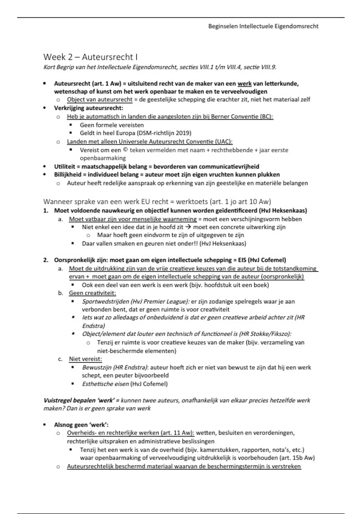 Gehele samenvatting vak Beginselen Intellectuele Eigendomsrecht RGBUPRV020