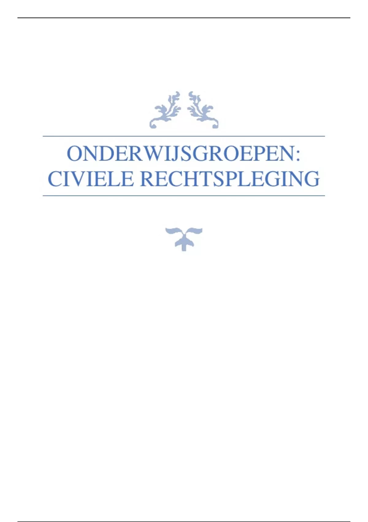 Deze bundel bevat hoorcolleges, onderwijsgroepen alsmede een samenvatting behorende tot de module 'Civiele rechtspleging' (MET4001) van de Universiteit Maastricht.