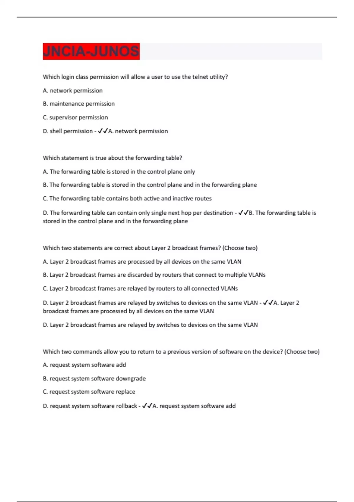 JunOS - JNCIA| Questions With 100% Correct Answers | Verified