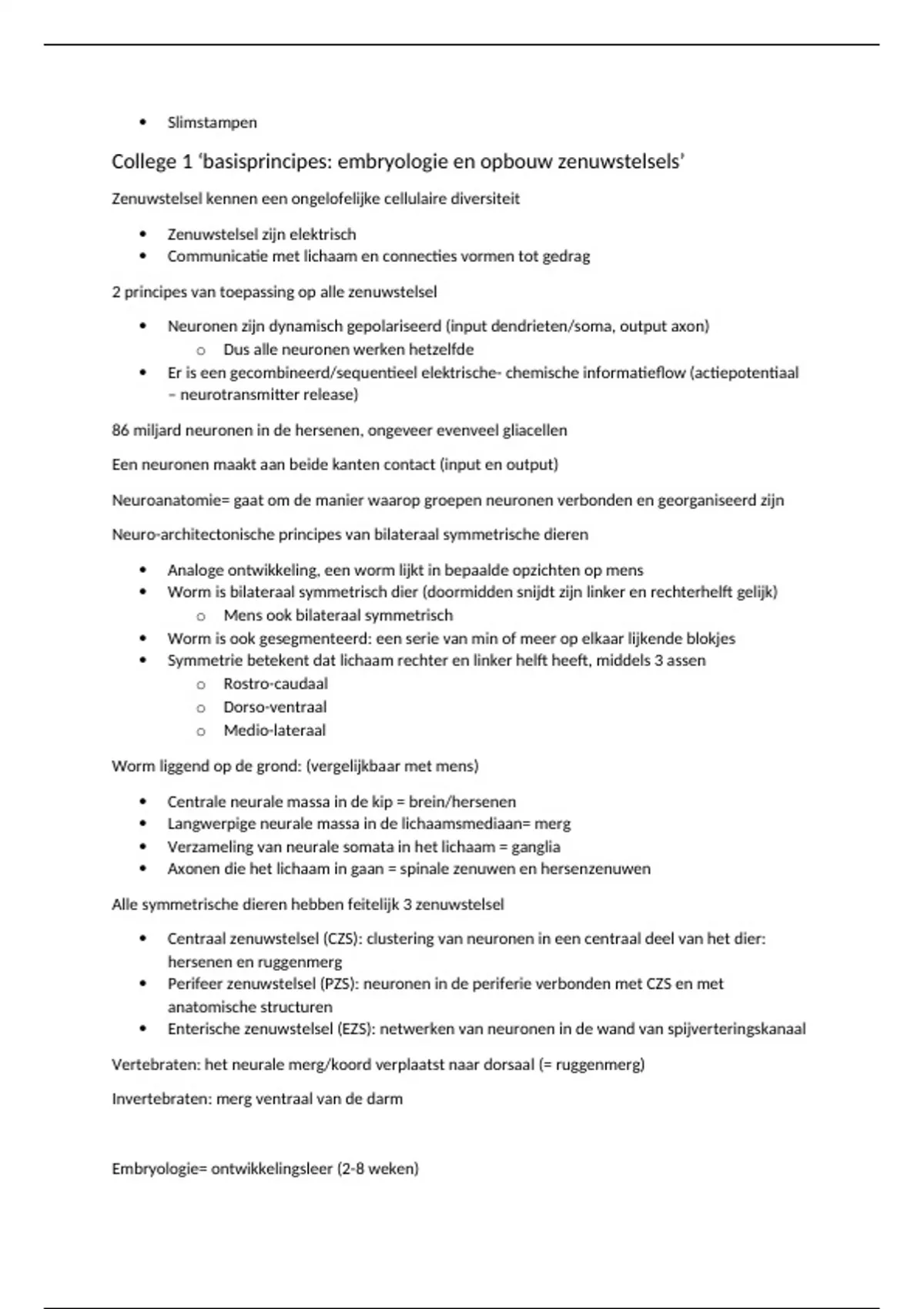 Aantekeningen van neuroanatomie 1 en 2