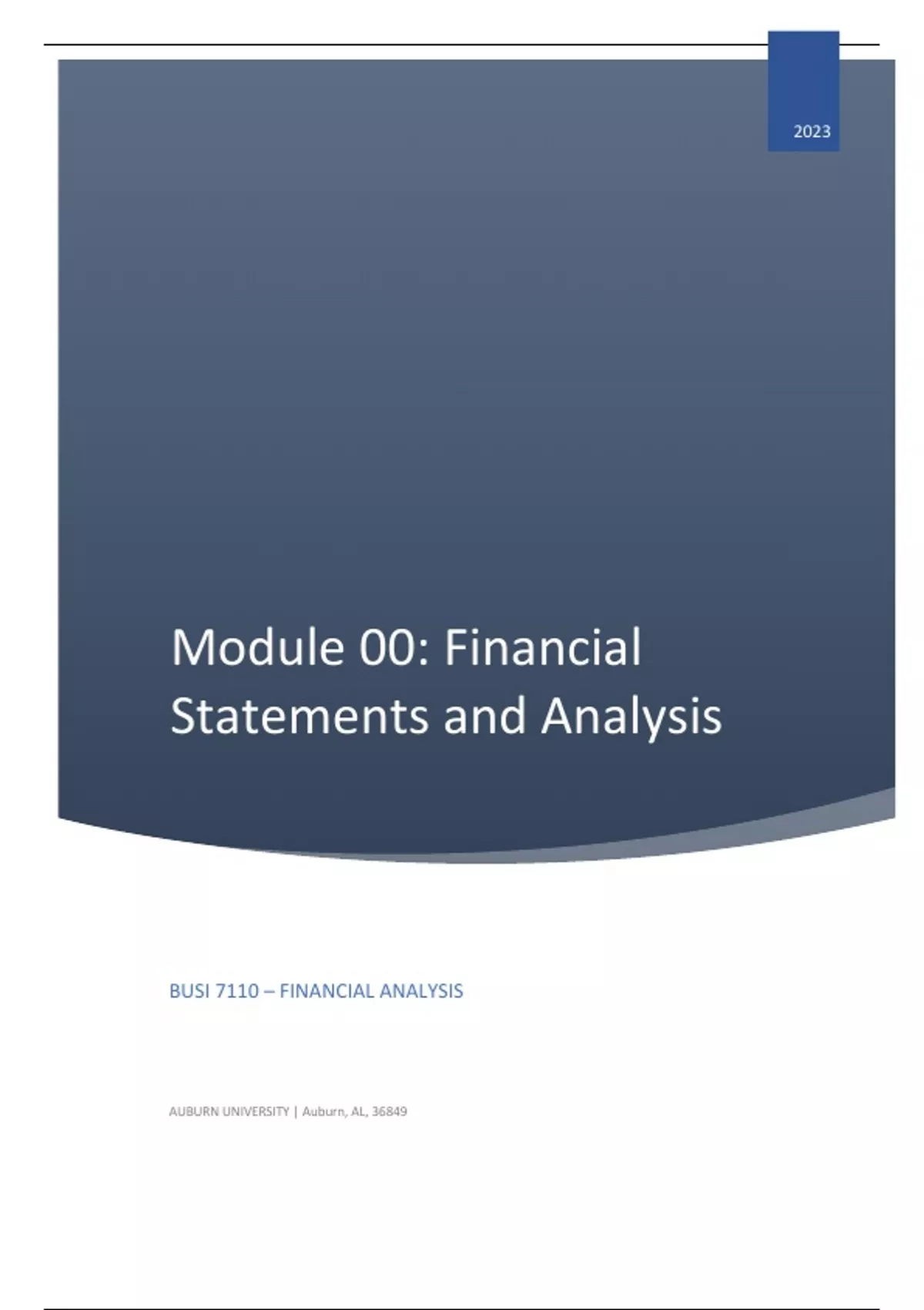 BUSI 7110: Financial Analysis - EXAM #1 PREP