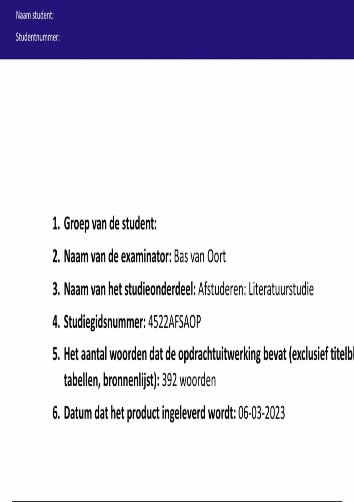 Voordeelbundel Afstuderen: Implementatieplan, Case Study en Literatuurstudie