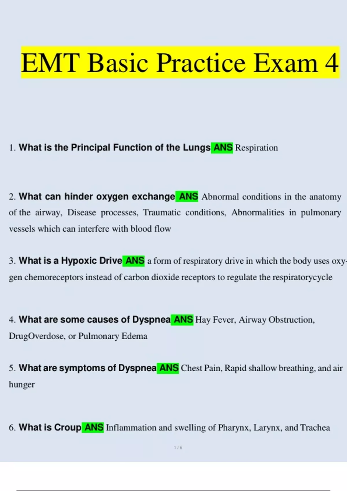 EMT Basic Practice Exam 1, 2, 3, 4, Merged Together (Verified Answers)