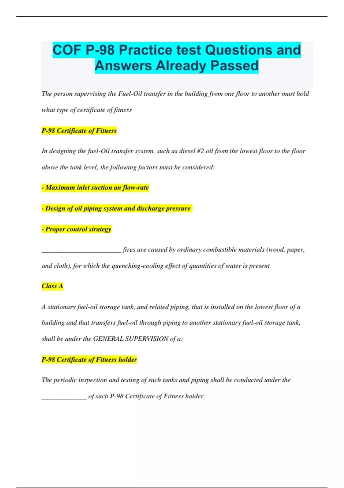 COF P-98 Bundled Exams with Complete and Certified Solutions