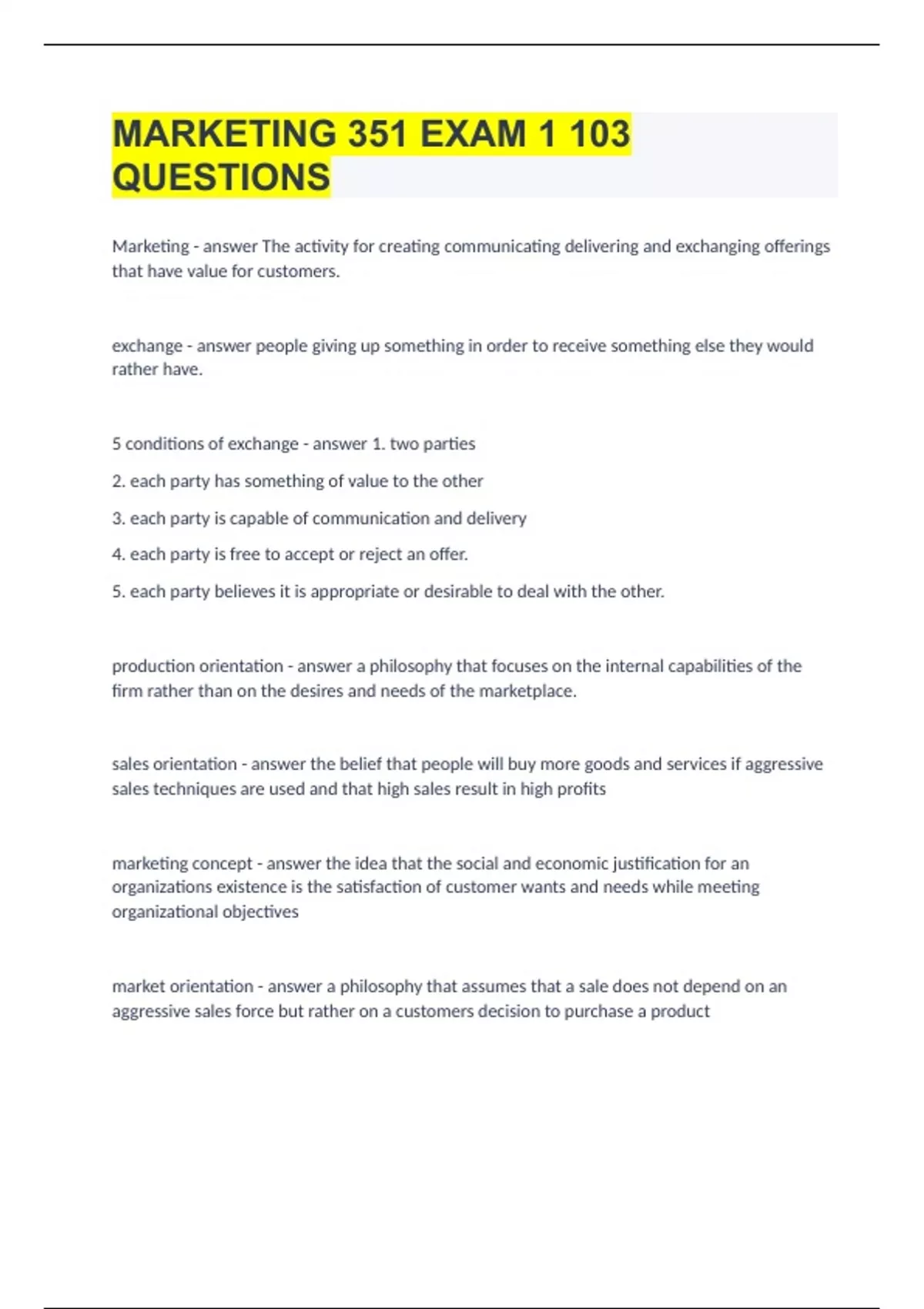 MARKETING 351 EXAM 1 CSUF LANCELLOTTI |79 QUESTIONS AND ANSWERS
