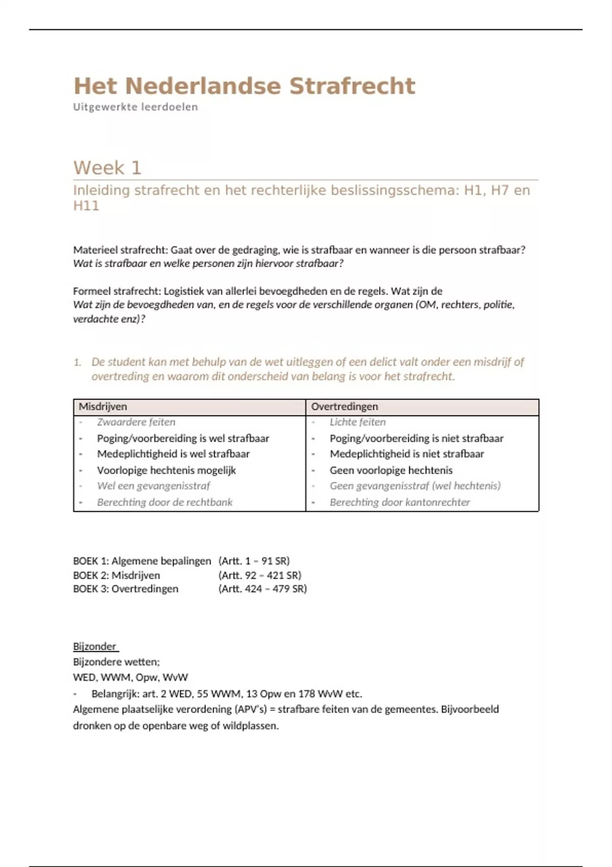 Deze cursus is een keuzemodule voor studenten van de opleiding HBO-Rechten voltijd. Dit is een samenvatting van ALLE leerdoelen. De samenvatting is gemaakt aan de hand van de sheets en het boek 'Grondtrekken van het Nederlandse strafrecht'. Voorafgaand de werkgroepen dien je de algemene vragen én de casusvragen te maken. Dit document is incl. antw.