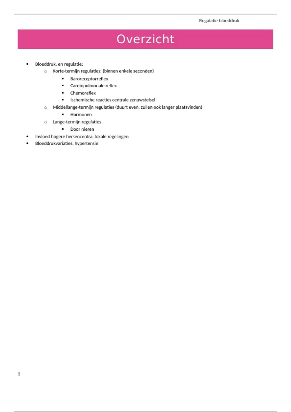 Samenvatting THK RUG cyclus 1.1.4 - Fysiologie (0660): KC's Bloeddrukregulatie