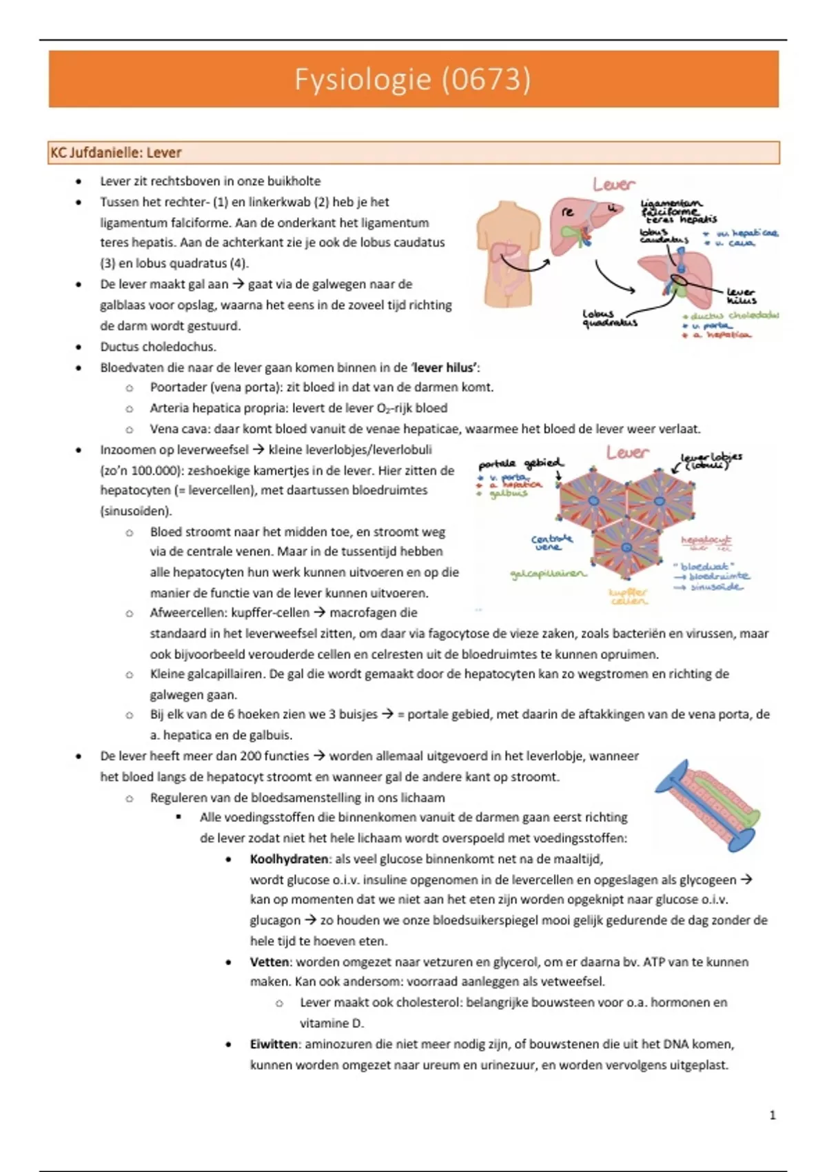 Samenvatting THK RUG cyclus 2.1.2 - Fysiologie (0673) KC's en seminar: lever + gal en galwegen