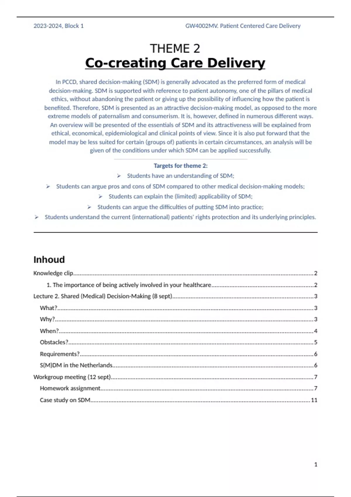 This bundel contains all the documents of Patient Centered Care Delivery with my notes on all the knowledge clips, all lectures and all of my workgroup meetings. With these documents, I was able to get a 7.5 for my exam, so hopefully you will as well! :)