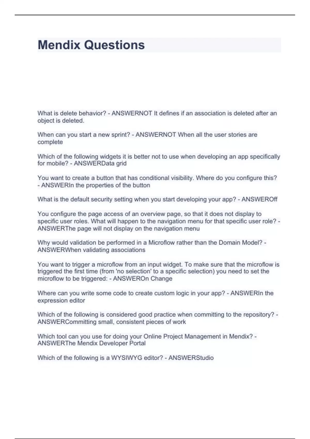 Exam (elaborations) INFO301 Mendix Exam questions with solutions 2 Exam (elaborations) Mendix developer B Exam questions and answers Rated A+ 3 Exam (elaborations) Mendix Advanced Exam questions and answers 100% correct 4 Exam (elaborations) Mendix B Exam with solved questions and answers 5 Exam (elaborations) Mendix B1 Exam questions and answe