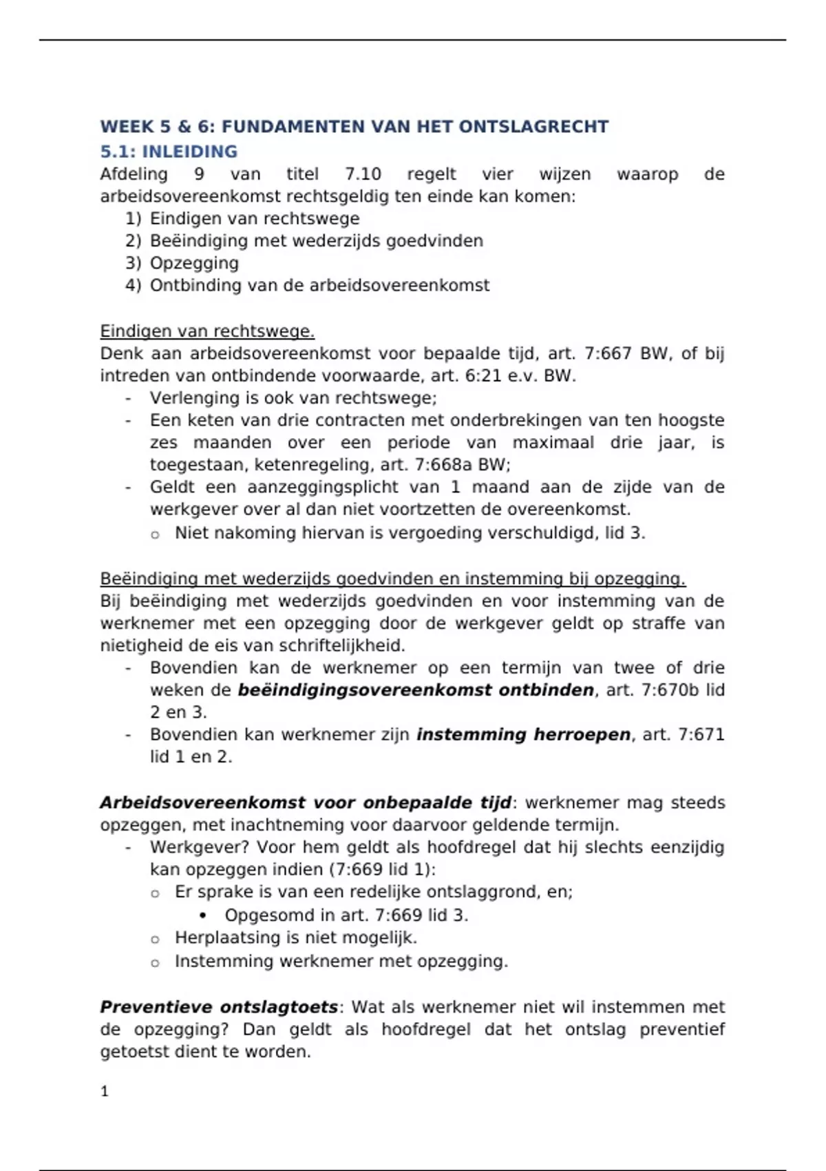 Literatuur samenvatting Arbeidsrecht Verdiept