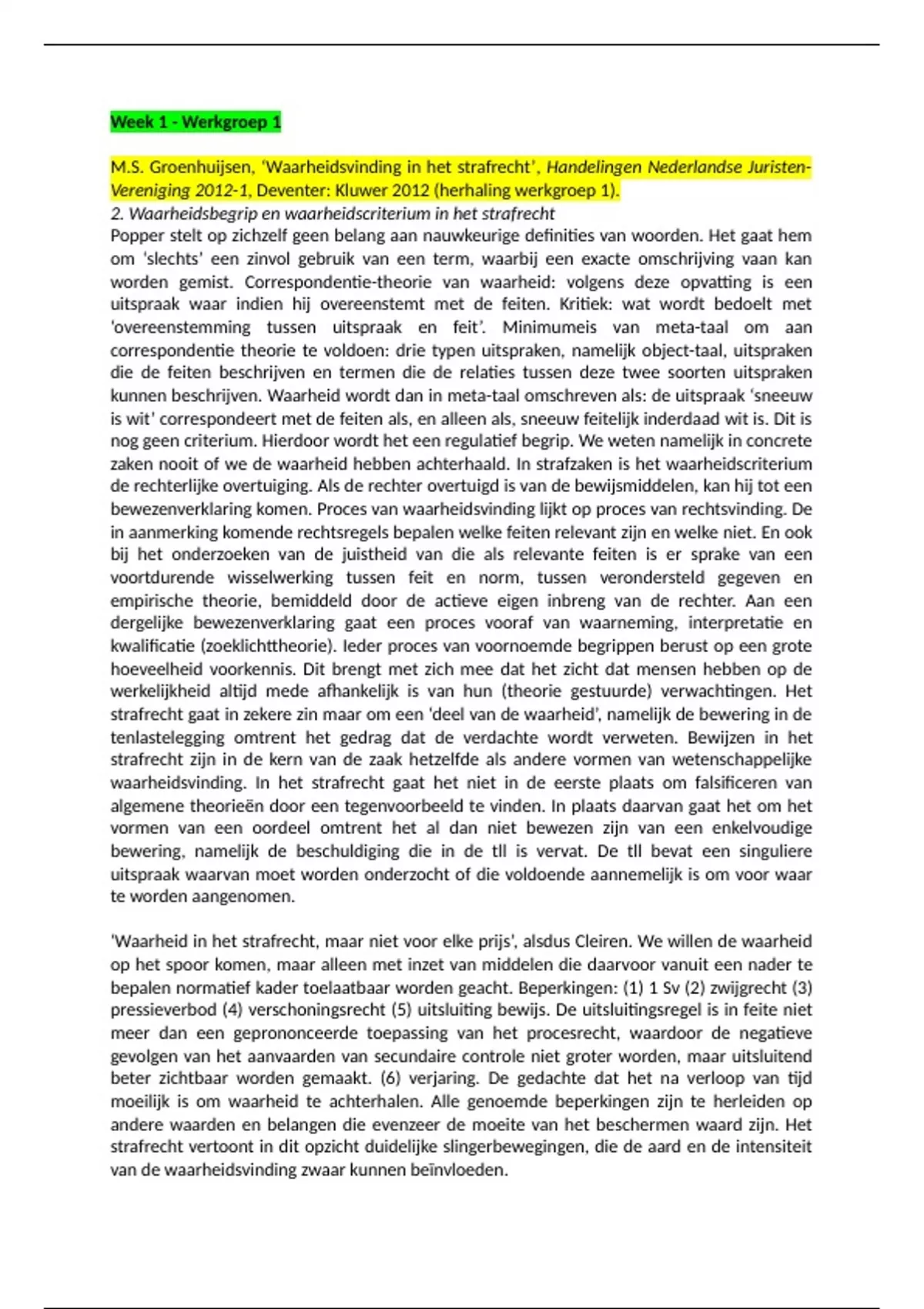 Werkgroepen, samenvatting en arresten!! Alles in 1!
