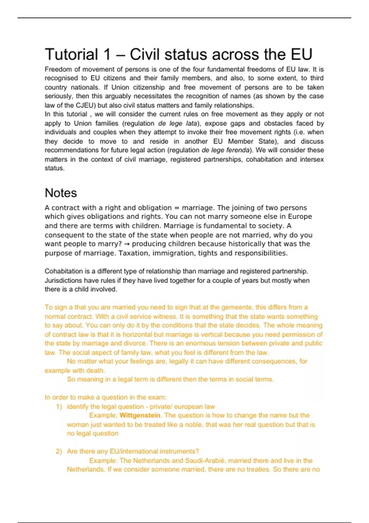 Family Law in Europe met uitgebreide tutorial en uitwerkingen van jurisprudentie en casu. Een 9 behaald met dit materiaal.