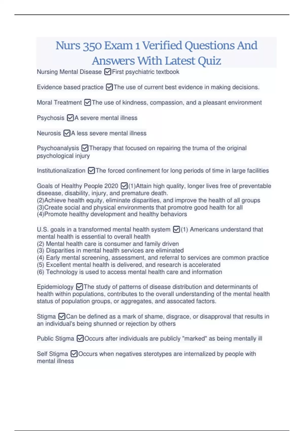 NURS 350 Verified Bundled With Complete Study Questions And Answers 2023/2024