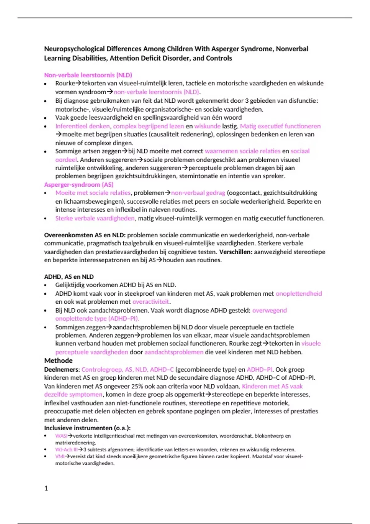 Artikel Neuropsychological Differences Among Children With Asperger Syndrome (Semrud-Clikeman e.a)samenvatting