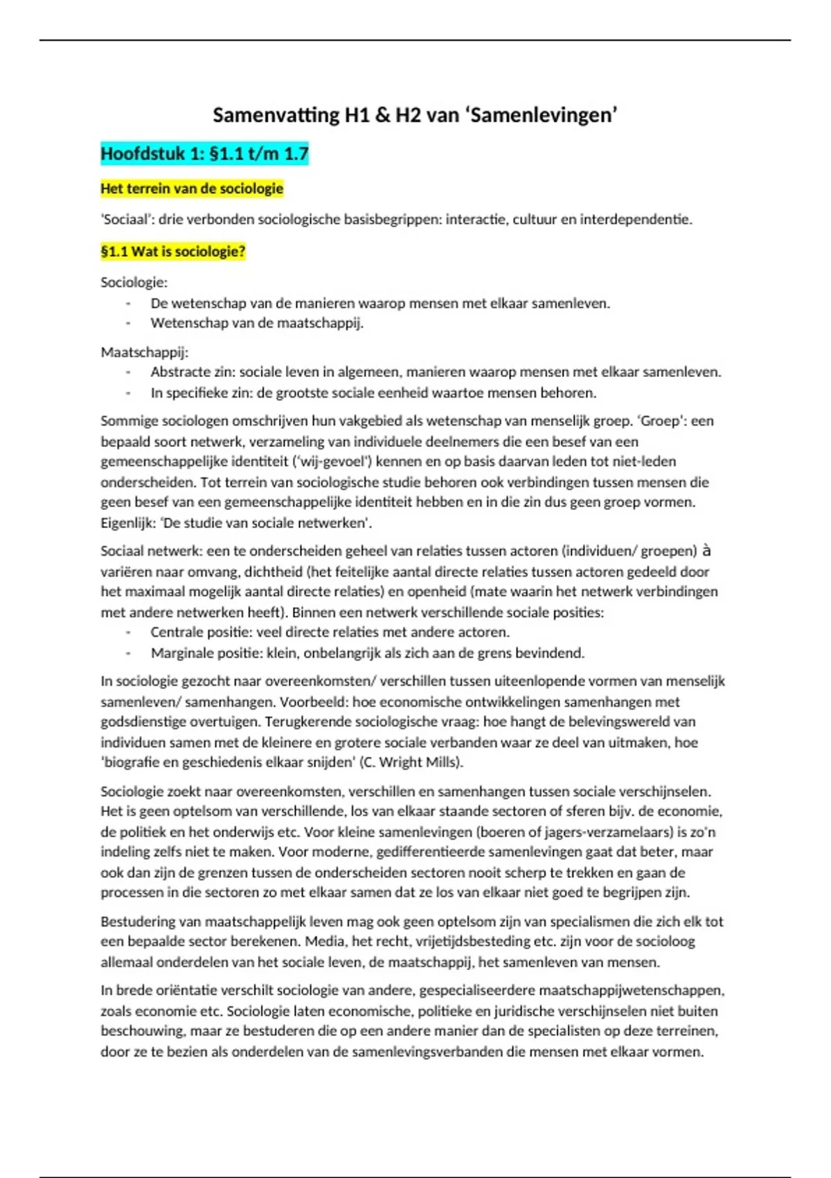 Uitgebreide samenvattingen voor Sociologie leerjaar 1