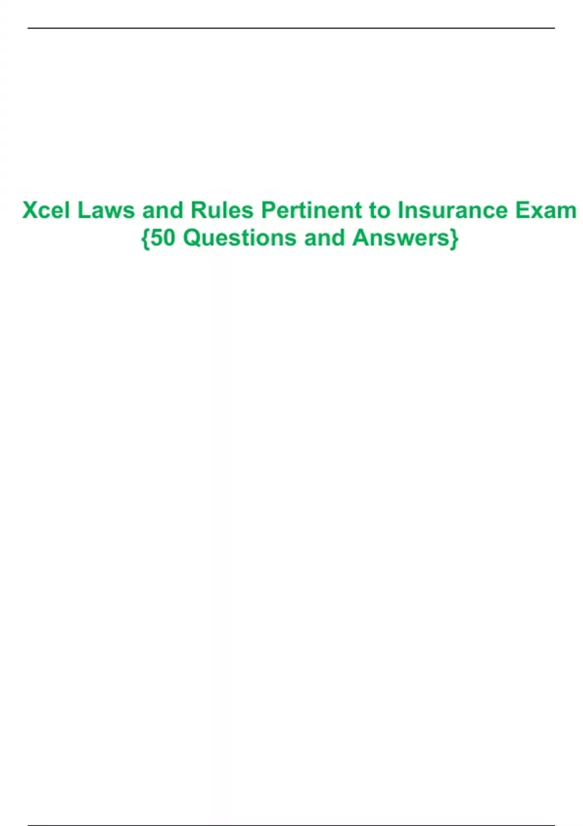 Xcel Laws and Rules Pertinent to Insurance Exam {50 Questions and Answers}