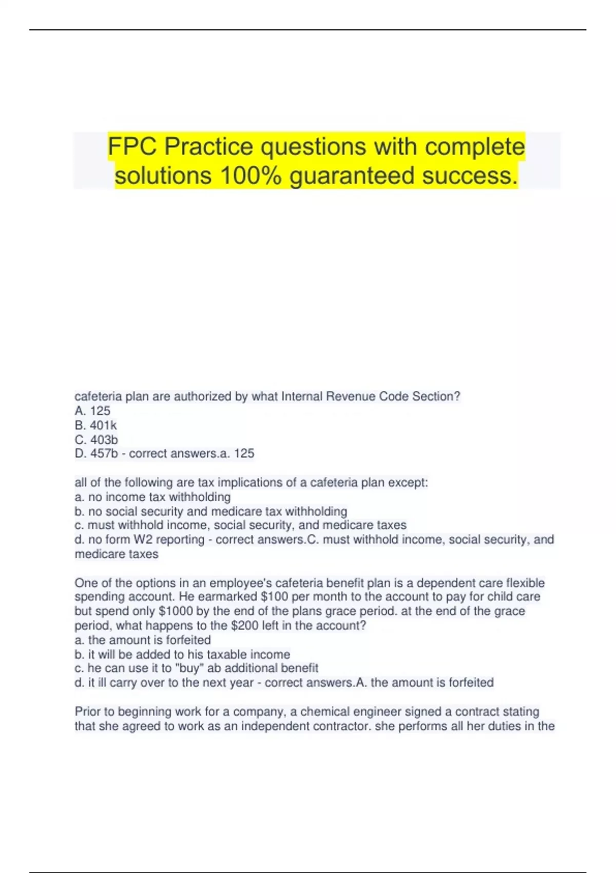 FPC Exam Fundamental Payroll questions and answers well illustrated.Flight Paramedic Certification Exam questions and answers.Flight Bridge FPC Practice Exams with complete solutions.FPC Certification questions and answers 100% verified.