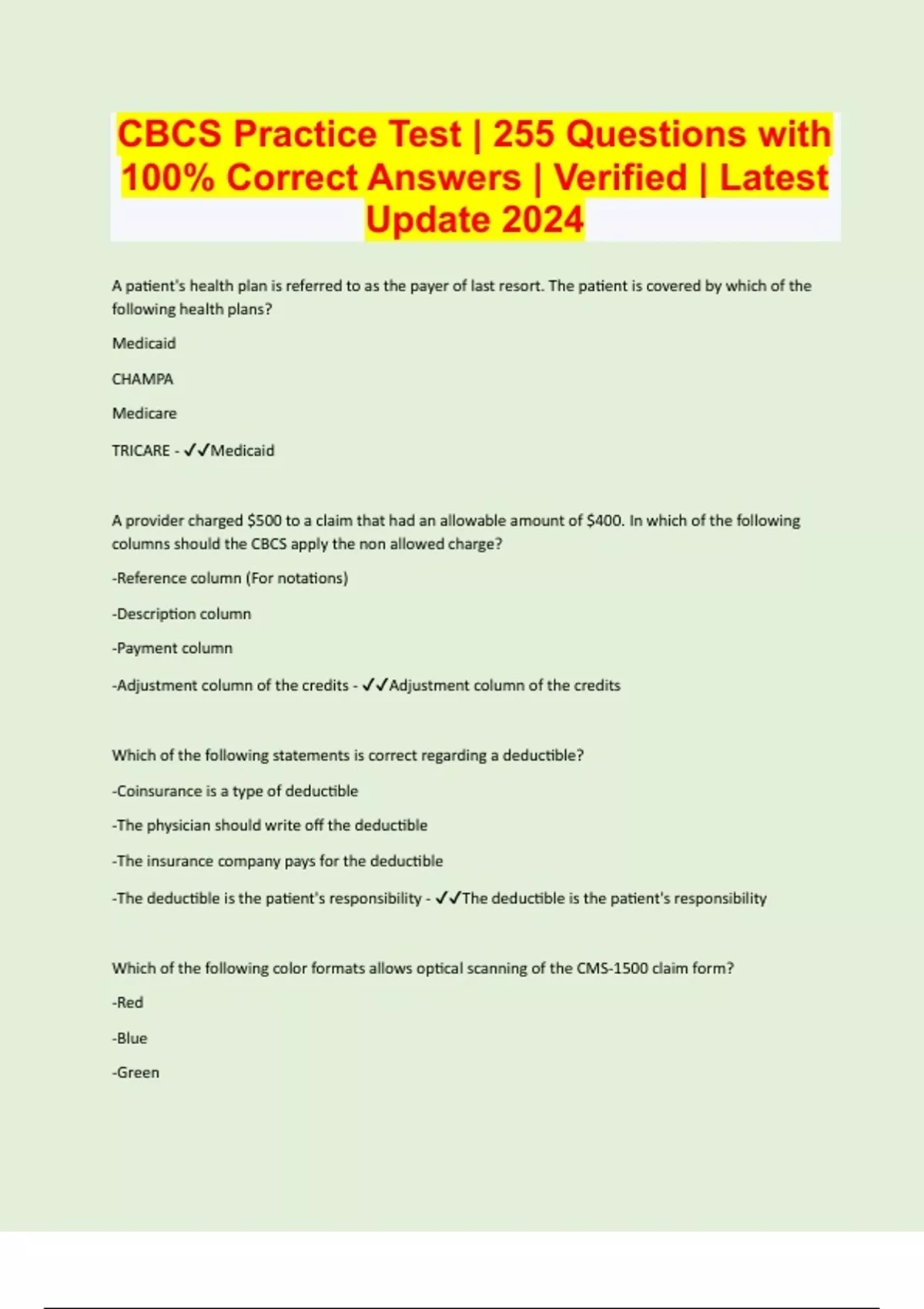 CBCS PRACTICE TEST | 185 Questions with 100% Correct Answers | Verified | Latest Update 2024