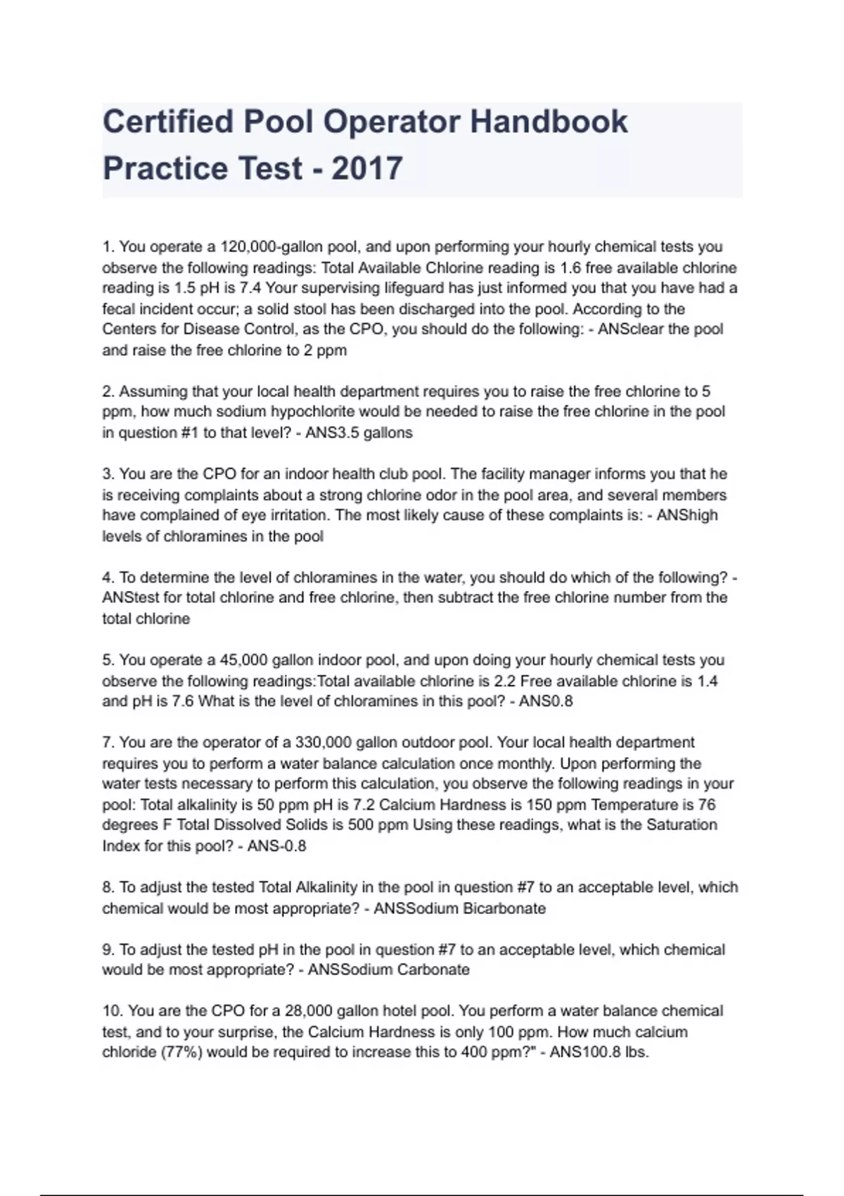 Aquatic Facility Operator 2023/2024 already graded A ( ALL BUNDLED HERE!!!)
