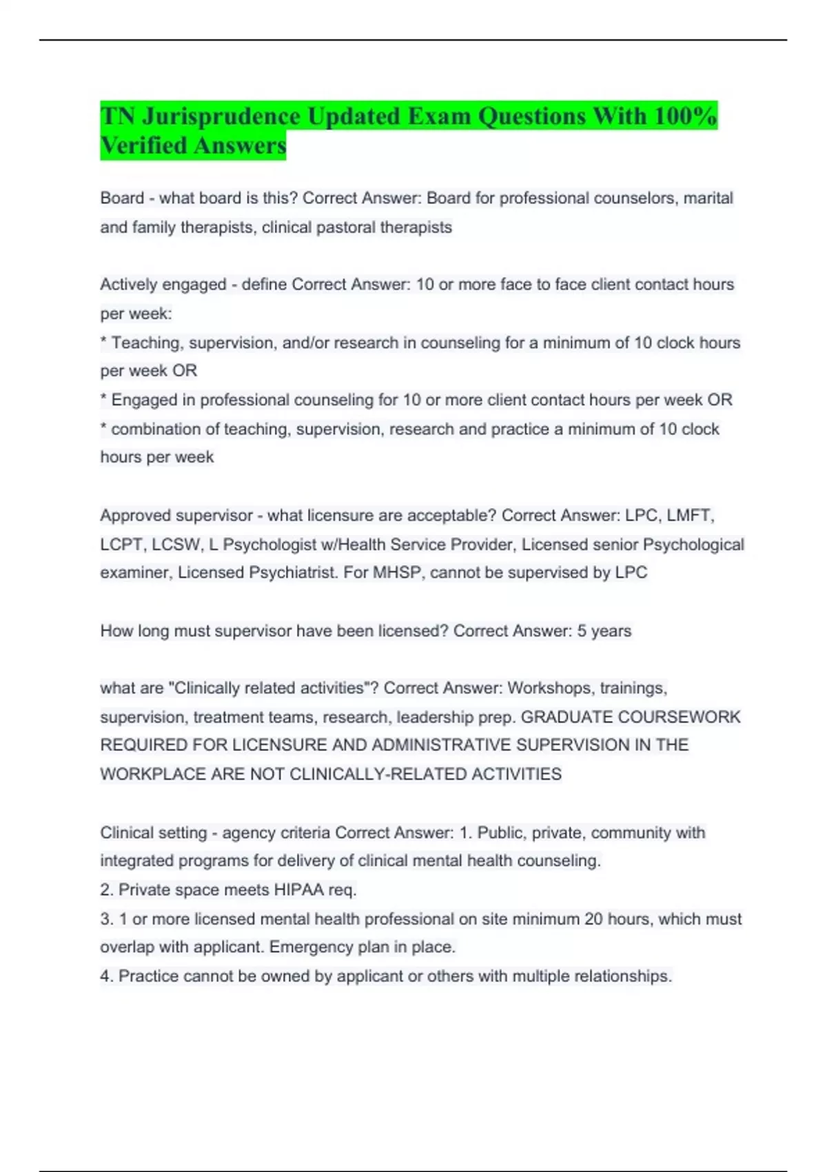 TN Jurisprudence BUNDLED Exam 2024 with 100% verified accurate answers
