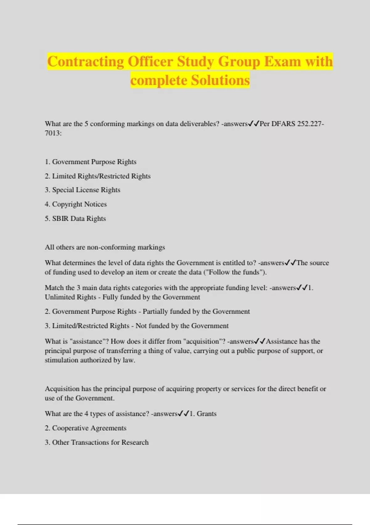 Contracting Officer Bundled Exams with complete solution