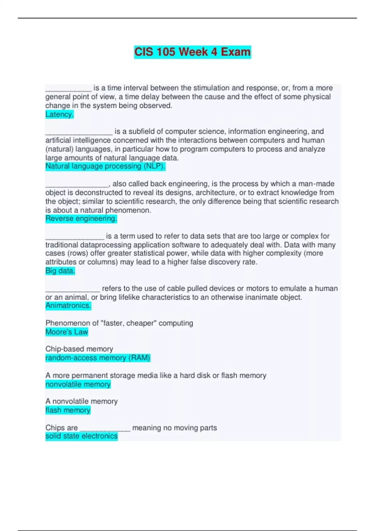 CS 105 WEEK 4 - 7 AND FINAL EXAMS PACKAGE -