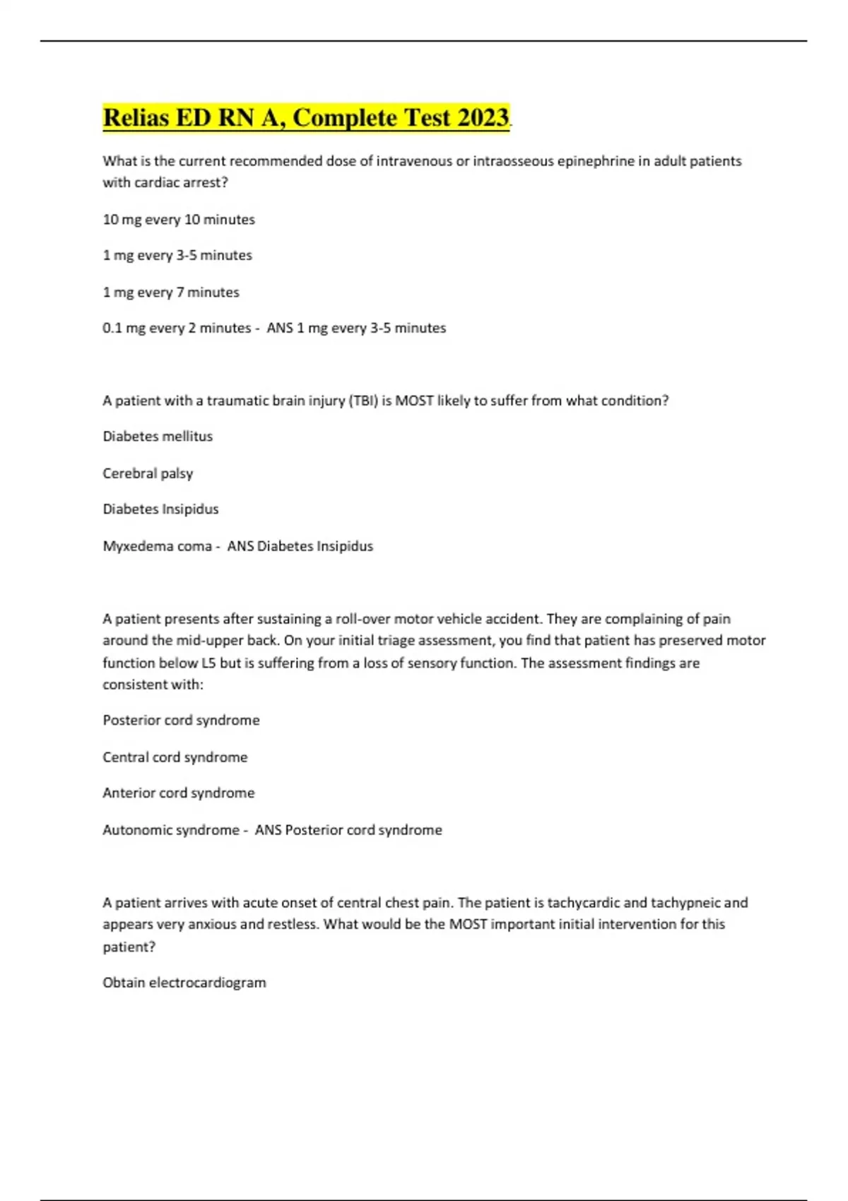 1 Exam (elaborations) Medical-Surgical RN A Prophecy Test / Relias Learning Answered 2024. 2 Exam (elaborations) (answered)Relias ED RN A, Complete Test 2024.