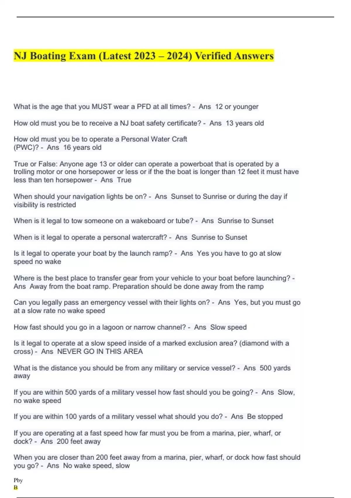 NJ Boating Certificate Practice Exam (Latest Version 2023 – 2024)