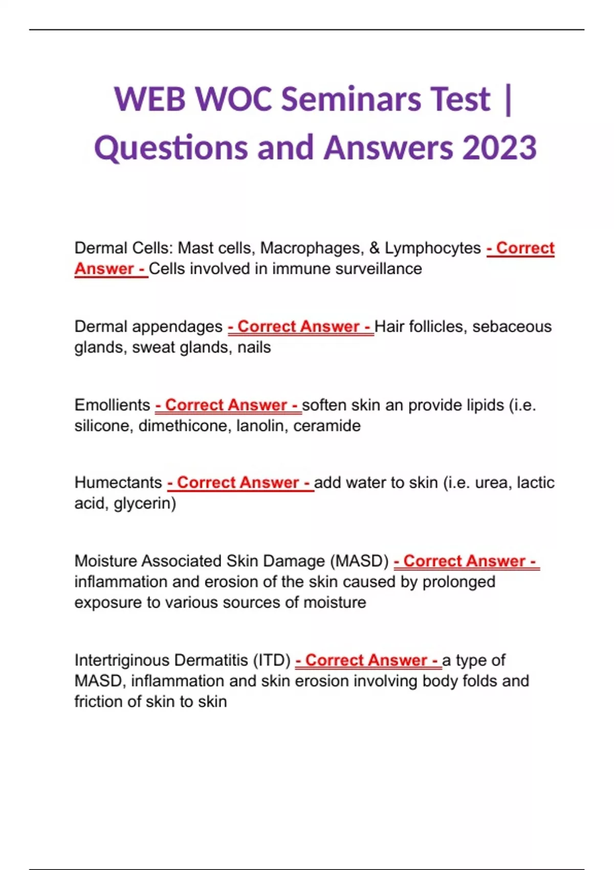 BUNDLE for WEB WOC Ostomy Care Quiz Questions | Answered | Guaranteed A+ | Latest 2024