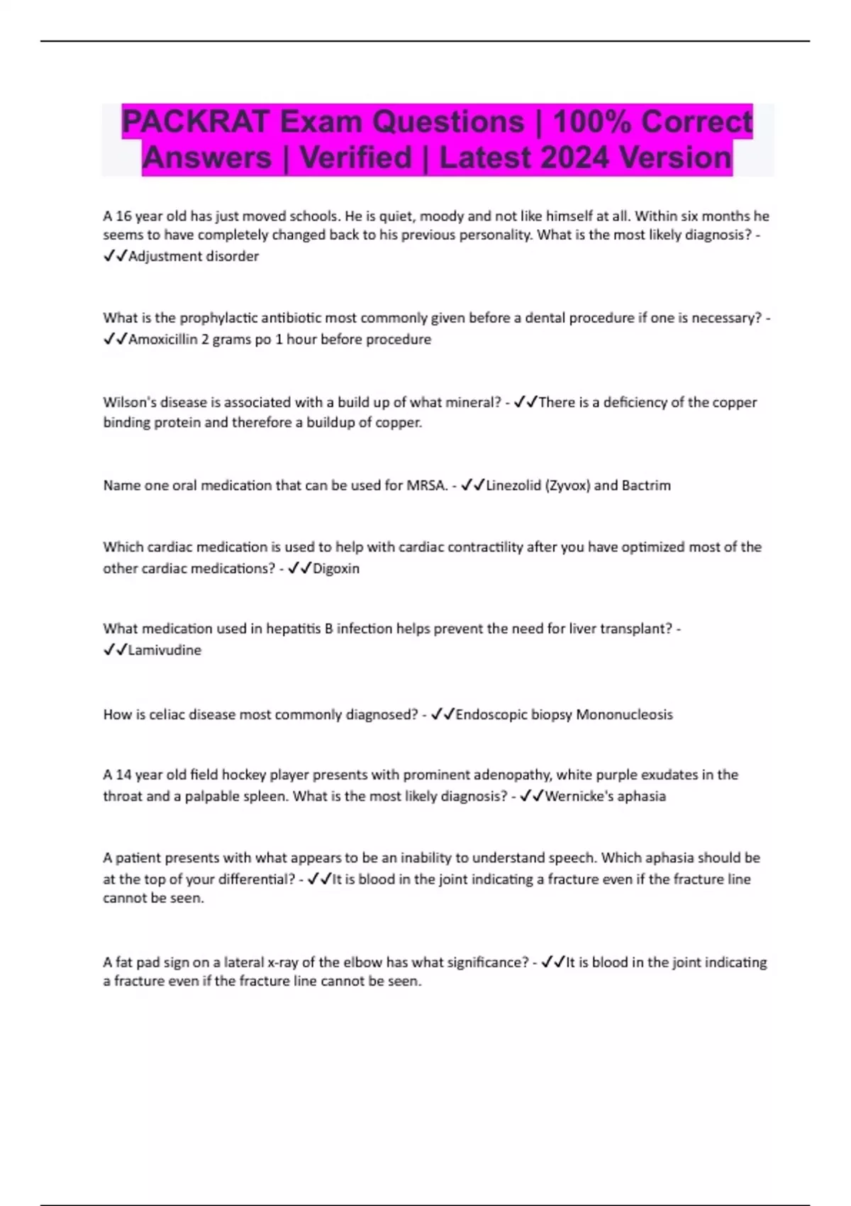 PACKRAT Bundled Exams with Complete Solution | Verified Answers | 2024