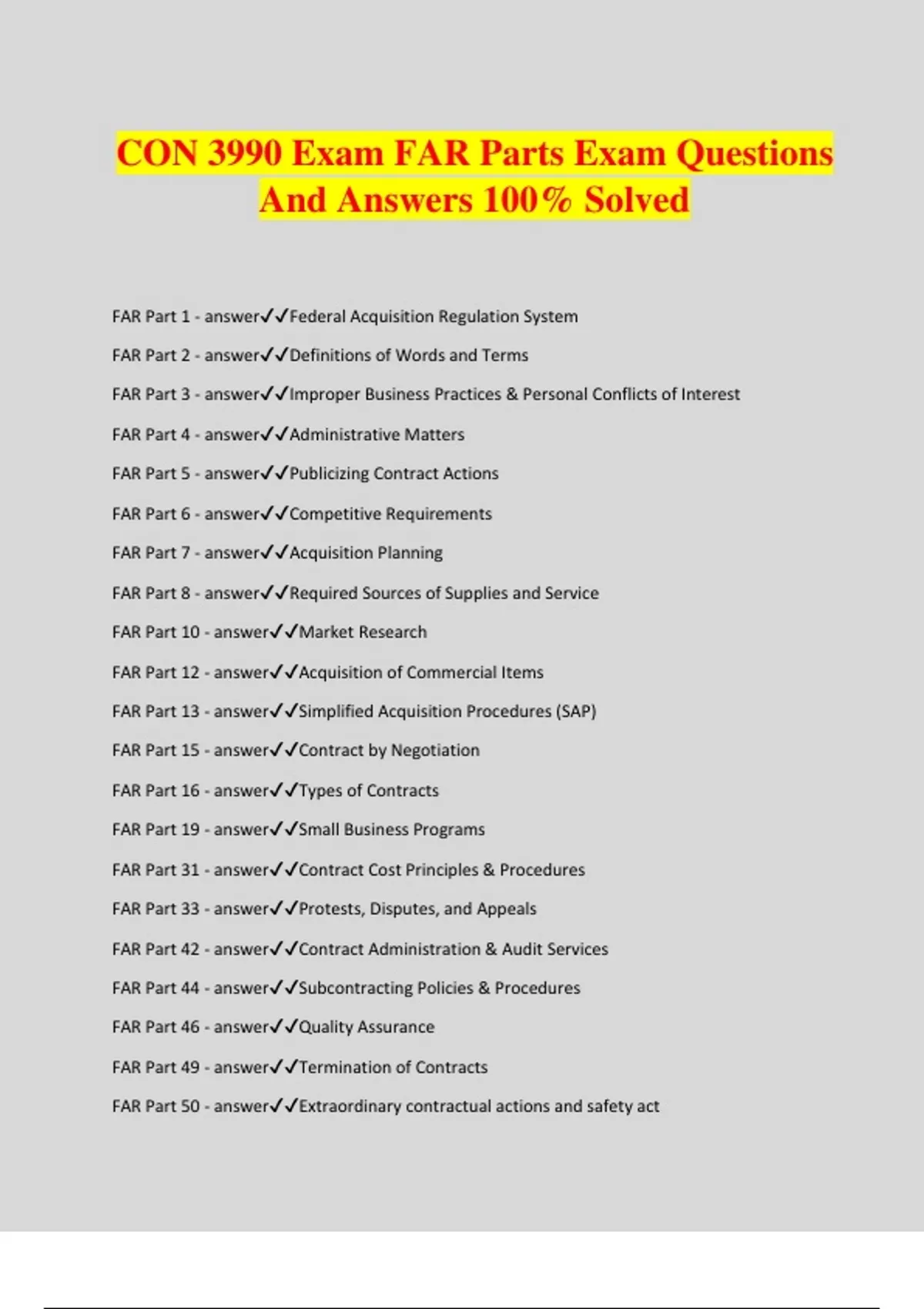 CON 3990 Exam FAR Parts Exam Questions And Answers 100% Solved