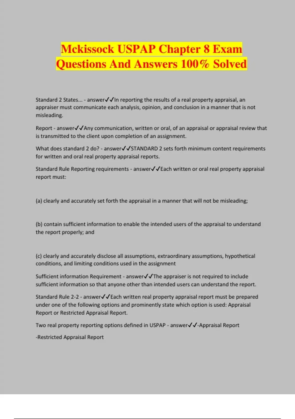 Mckissock USPAP Chapter 8 Exam Questions And Answers 100% Solved