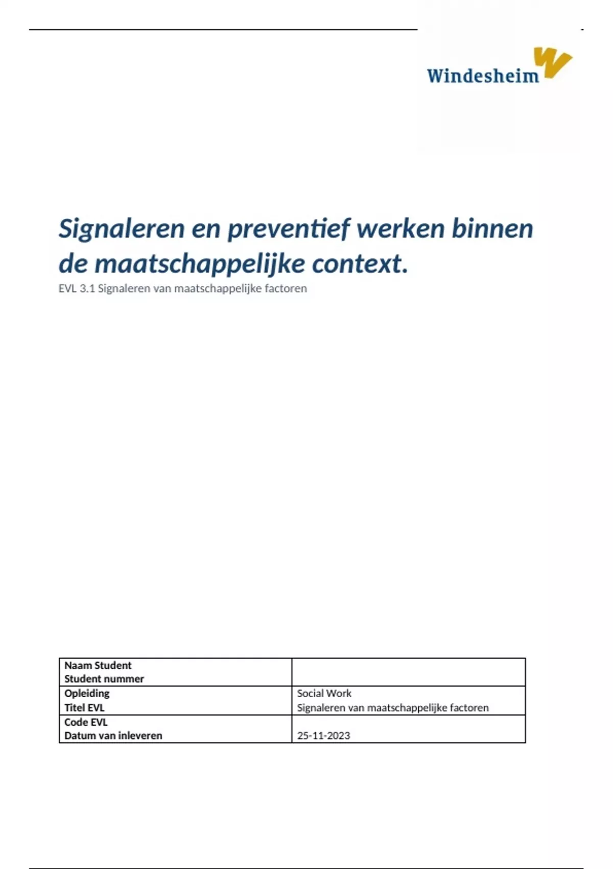 Gehele EVL 3: Signaleren van maatschappelijke factoren.