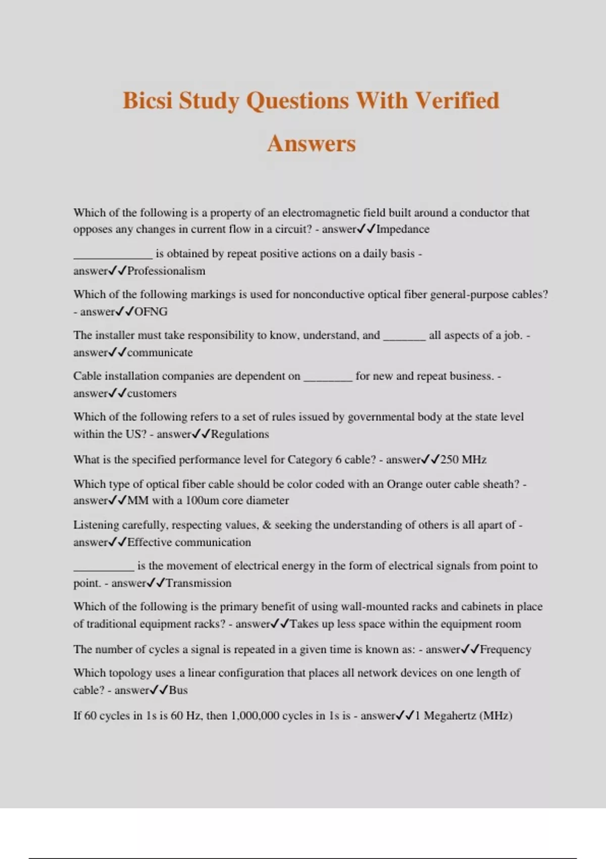 Bicsi Study Questions With Verified Answers