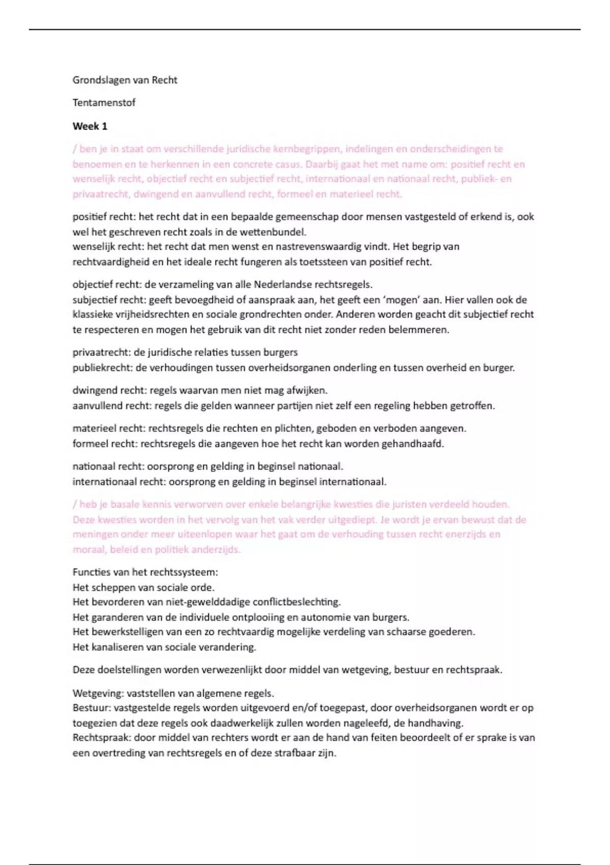 Samenvatting grondslagen van recht ALLE tentamenstof