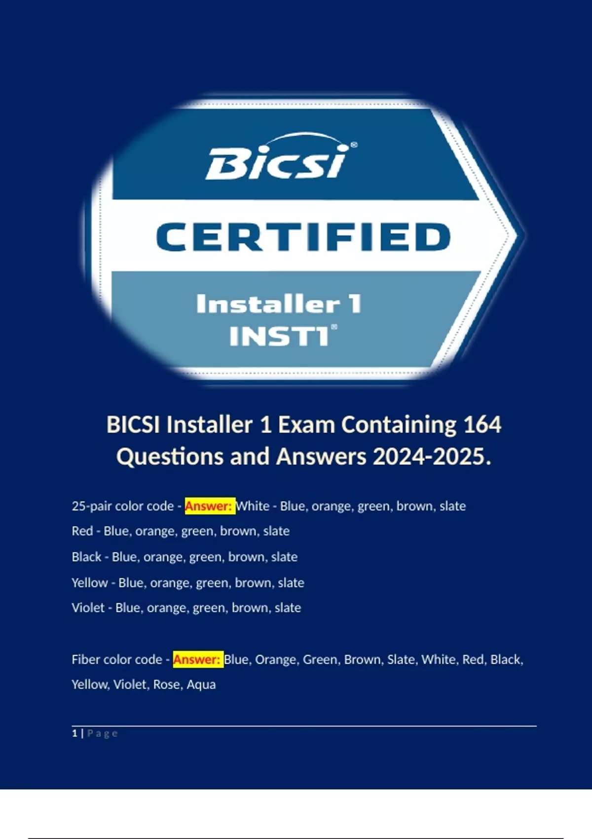 1 Exam (elaborations) BICSI RTPM (Study for Telecommunication Project Manager) Exam Questions with Answers 2024 2 Exam (elaborations) BICSI Installer 2 Key Terms with Answers and Rationales/ . 3 Exam (elaborations) BICSI Installer 2 Key Terms with Answers and Rationales/ . 4 Exam (elaborations) BICSI Practice Test-Retake Questi