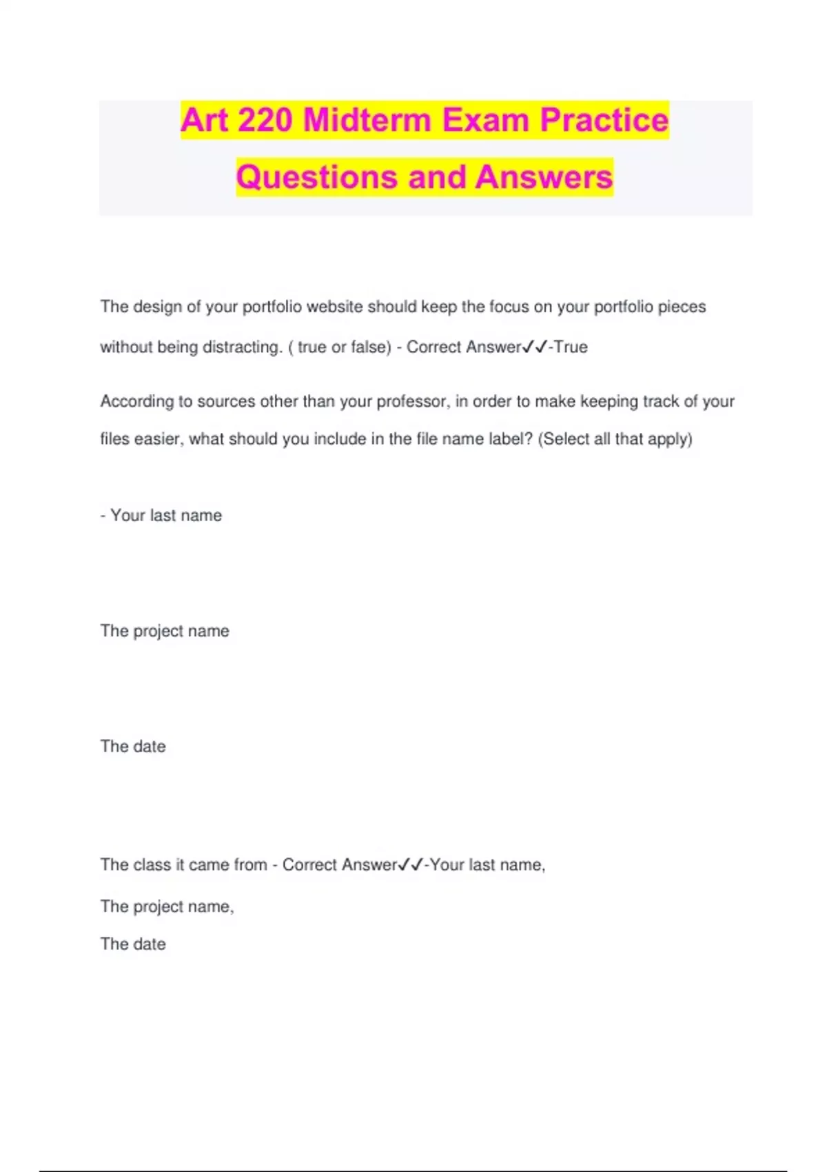 Art 220 Midterm Exam Practice Questions and Answers