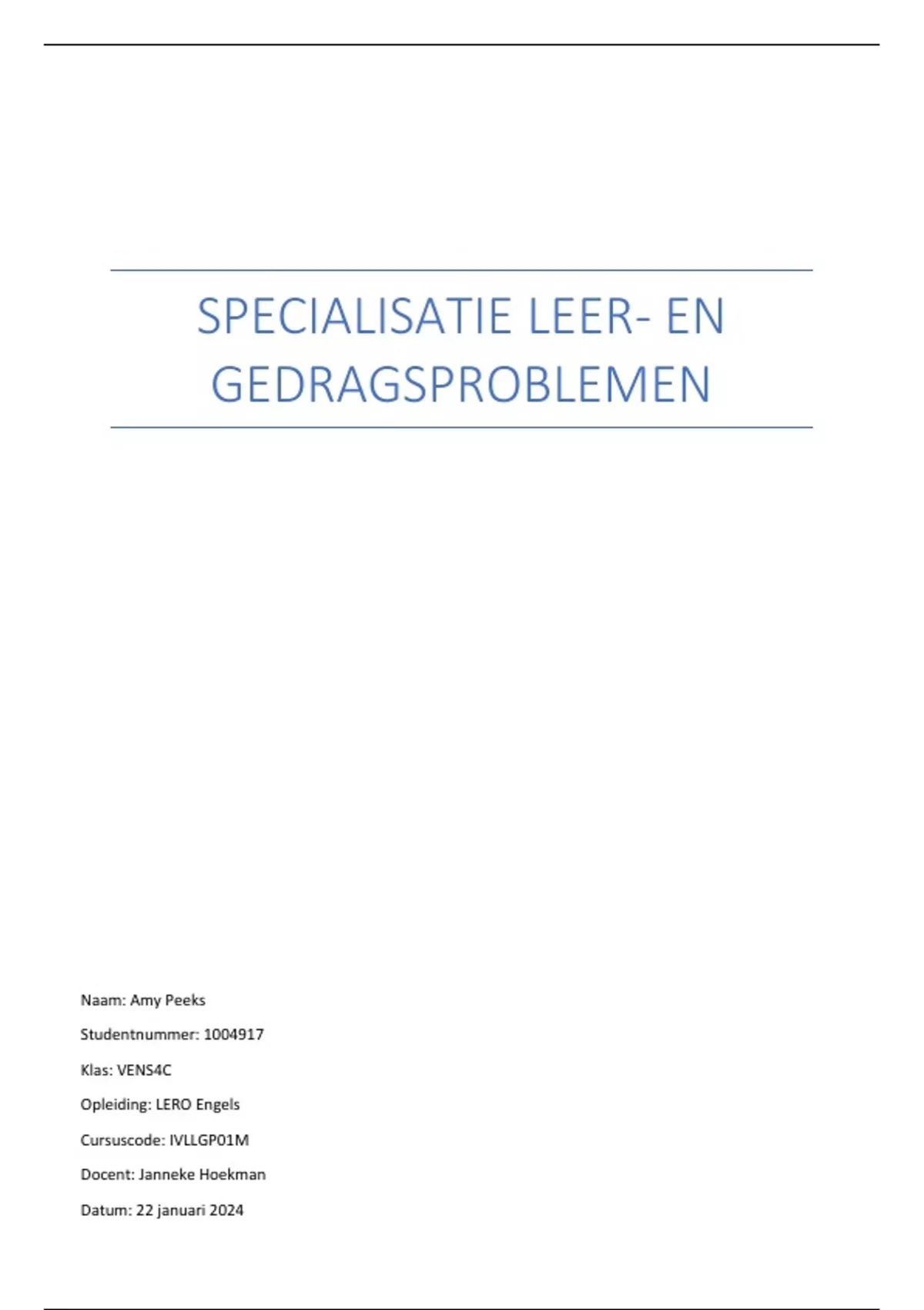 Minor passend onderwijs en leerlingenzorg - specialisatie leer- en gedragsproblemen