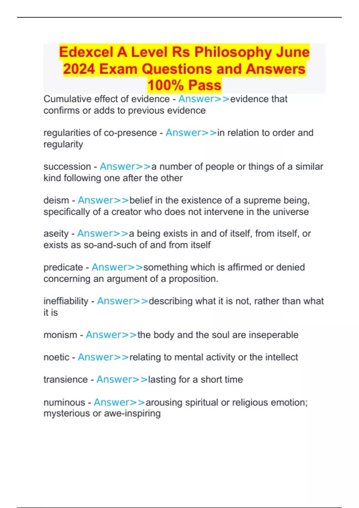 Edexcel A Level Philosophy EXAM PREPARATIONs COMPILATION BUNDLE 100% GUARANTEED SUCCESS