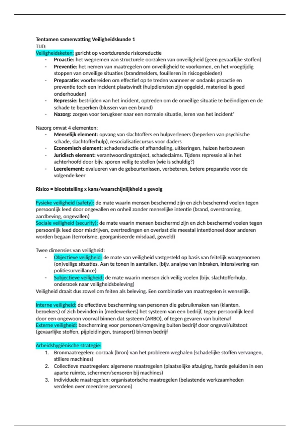 Samenvattingen Veiligheidskunde 1 én 2 (Saxion) 2024