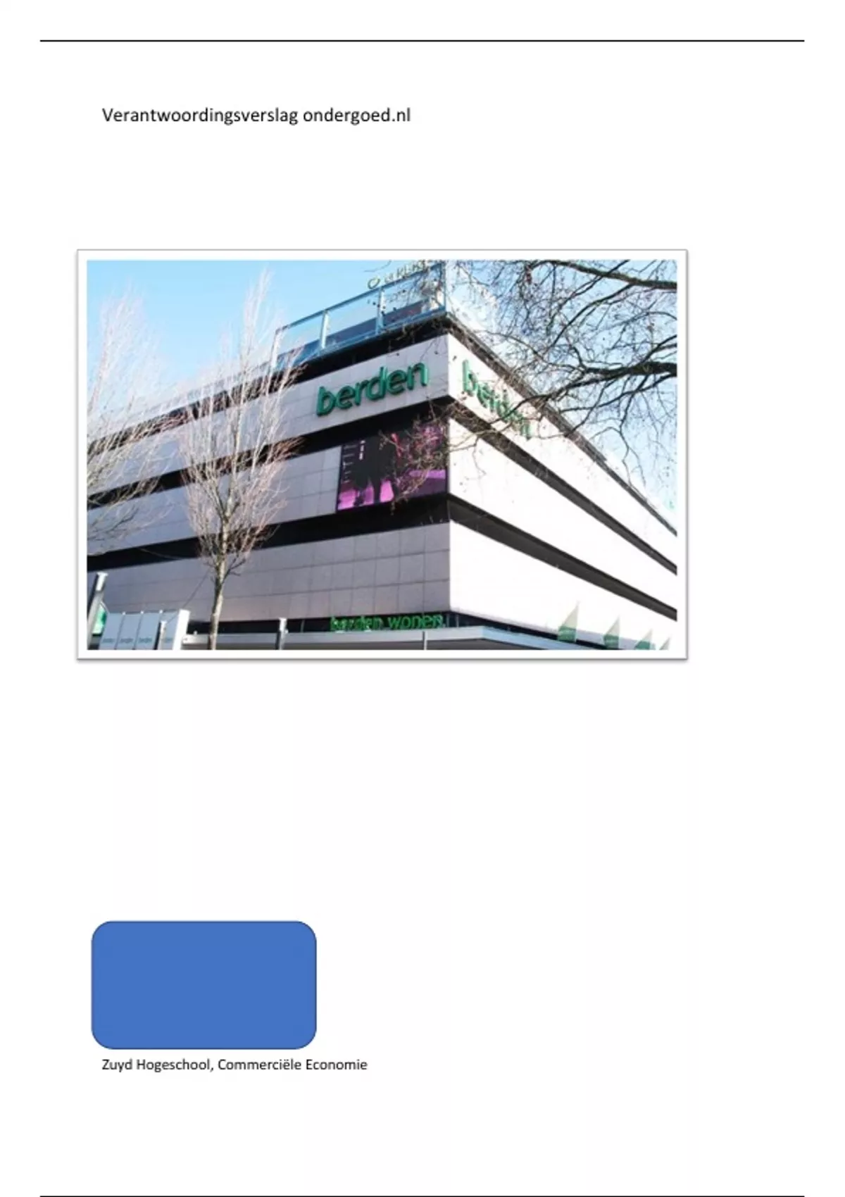 Dit is een voorbeeldscriptie van de opleiding commerciële economie Hogeschool Zuyd. In het onderzoek wordt er een communicatieplan opgesteld voor het bedrijf Berden & Wonen voor hun zusterbedrijf . Dit bestaat uit 3 verschillende deelproducten en wordt in het verantwoordingsverslag allemaal onderbouwd.