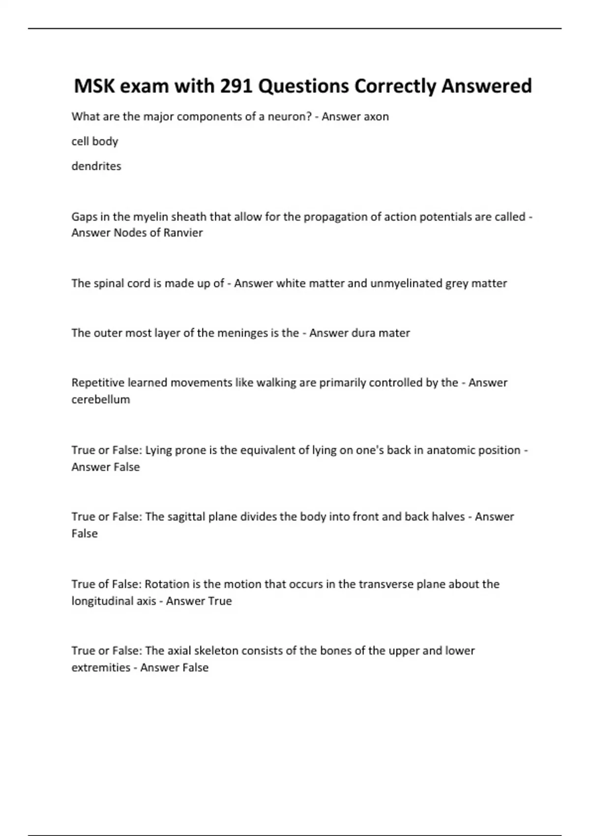 MSK Exam Study Questions Solved 100% Correct |Latest Update