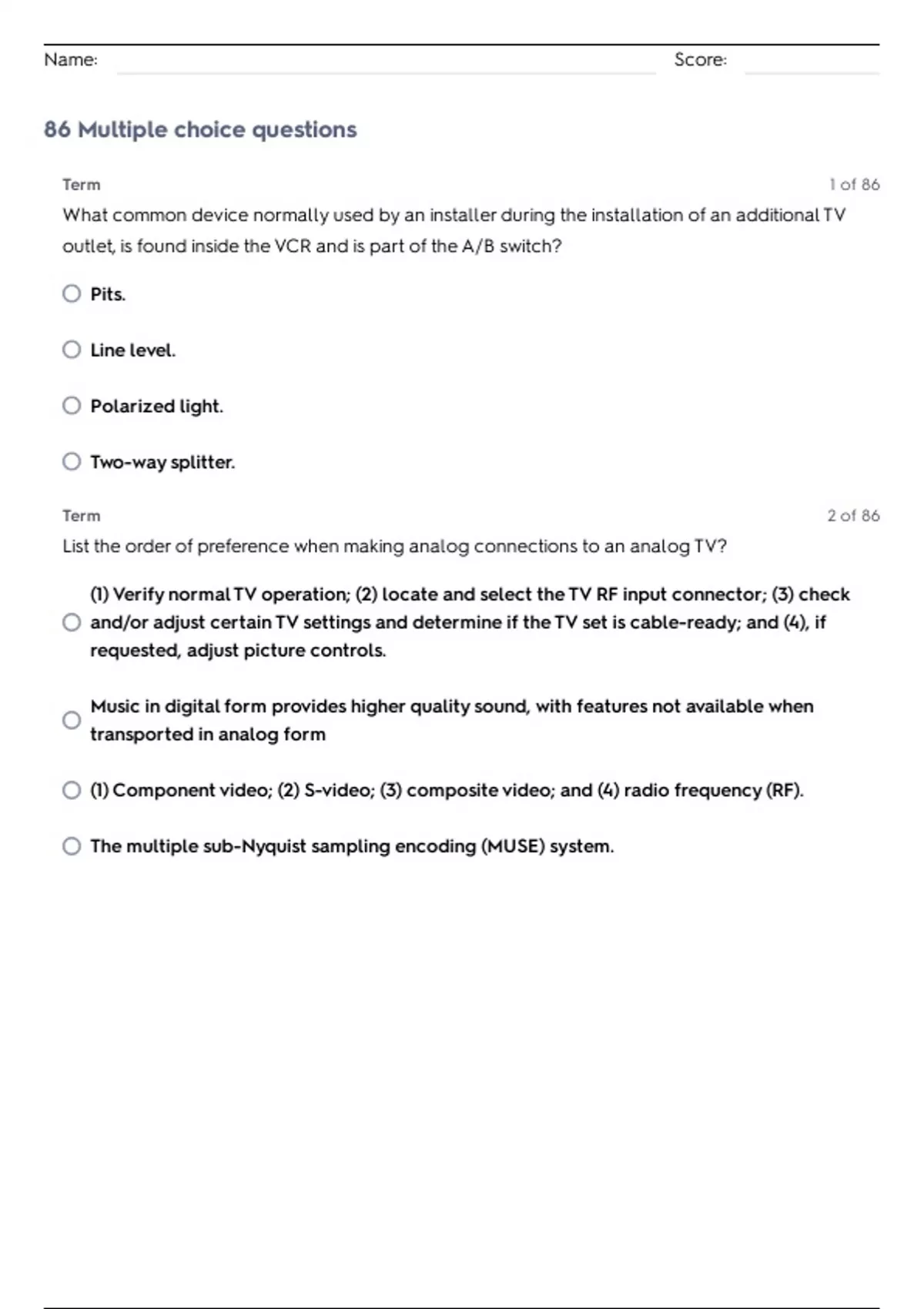 NCTI CONSUMER DIGITAL ELECTRONICS QUESTIONS WITH VERIFIED ANSWERS ALREADY GRADED A+