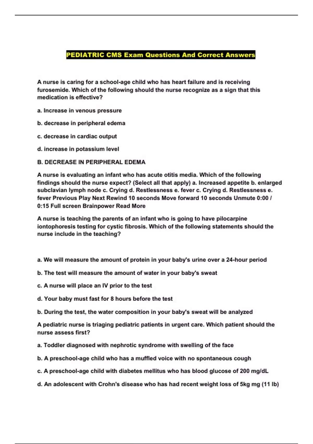 PEDIATRIC CMS Exam Questions And Correct Answers