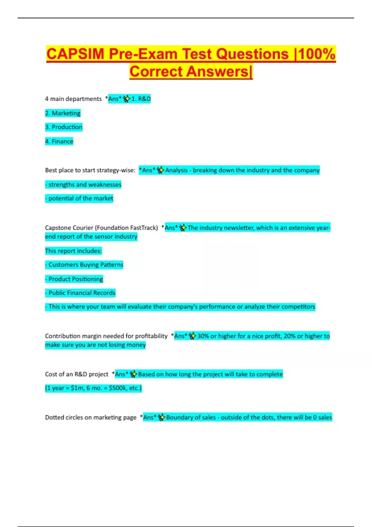 CAPSIM Compiled Package Deal 1 [Verified 100% Correct Answers ]